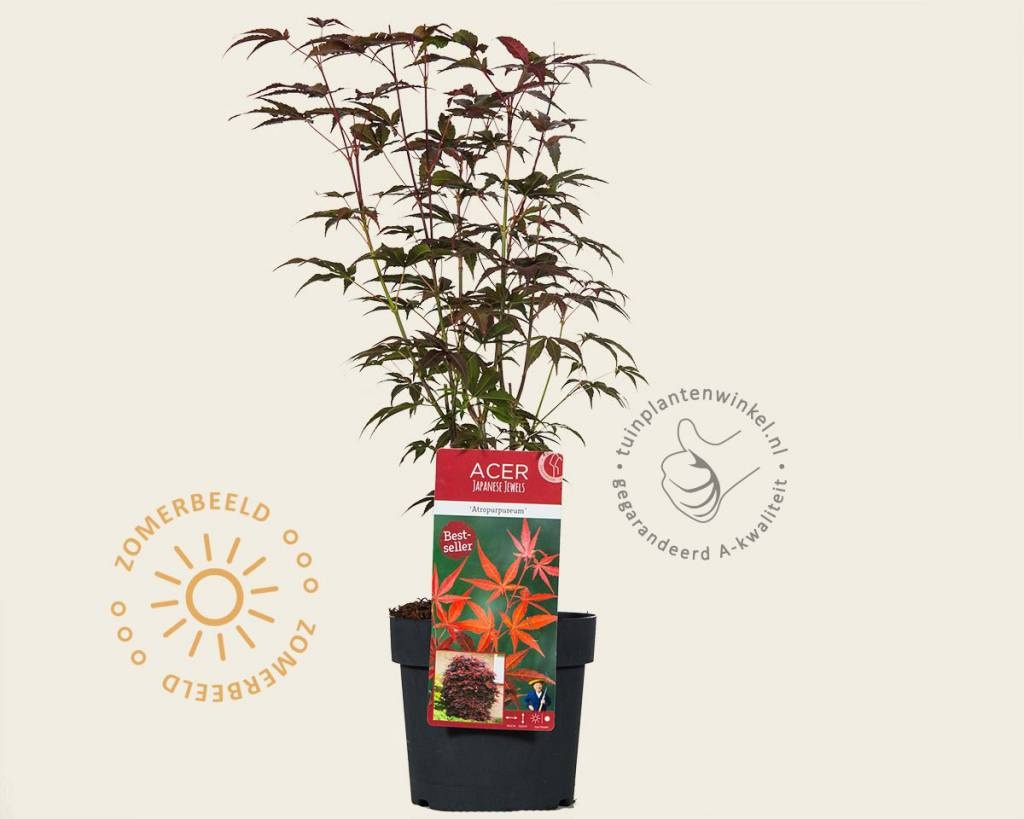 Acer palmatum 'Atropurpureum' heeft als Nederlandse naam Japanse Esdoorn. De Acer soorten die in de zon kunnen zijn de soorten met het meest grove blad. Veel soorten hebben fijn blad en verbranden vaak als ze in de volle zon staan. Daarom staan veel Acer soorten graag in de half schaduw tot schaduw. Soms kan men kijken op welk deel van de dag dat de Acer in de zon staat is dit alleen vroeg in de ochtend of eind middag en avond dan is dit meestal geen probleem.