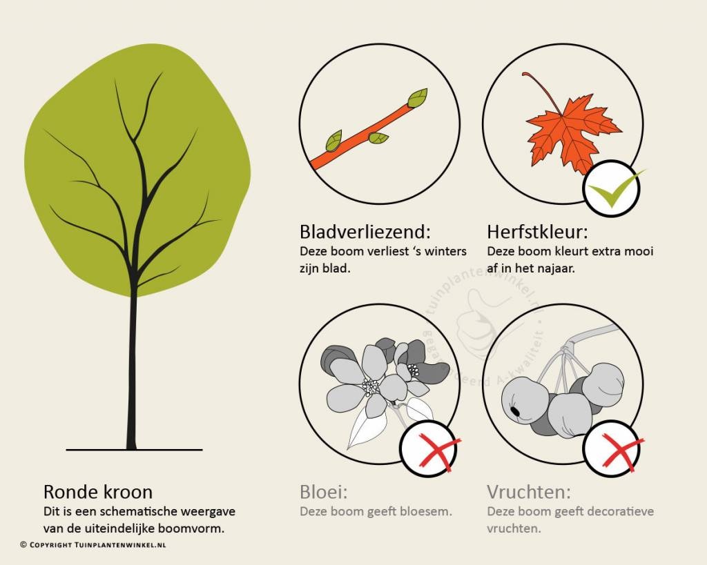 Bomen van Tuinplantenwinkel.nl kunt u jaarrond planten. Dit kan omdat we al onze bomen in pot leveren. Aanplanten in de herfst, winter, lente én zomer is dus altijd mogelijk, met aangroeigarantie!