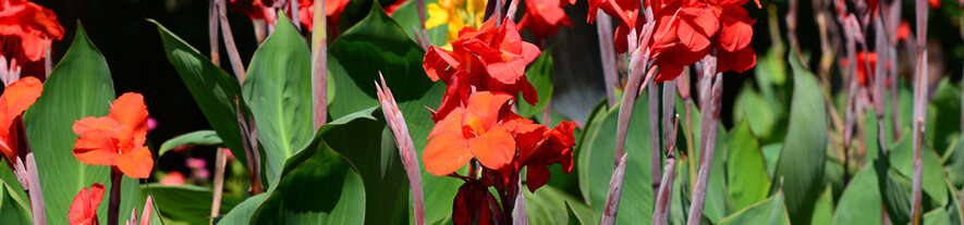 Canna is een opvallende plant met brede zwaardvormige bladeren die statig omhoog groeien. De bloemstelen ontwikkelen zich in de zomer van waaruit zich in de zomer exotisch gekleurde bloemen ontwikkelen. De bloei duurt van juli/augustus tot diep in het najaar. Zet Canna bij voorkeur op een plek in de volle zon.