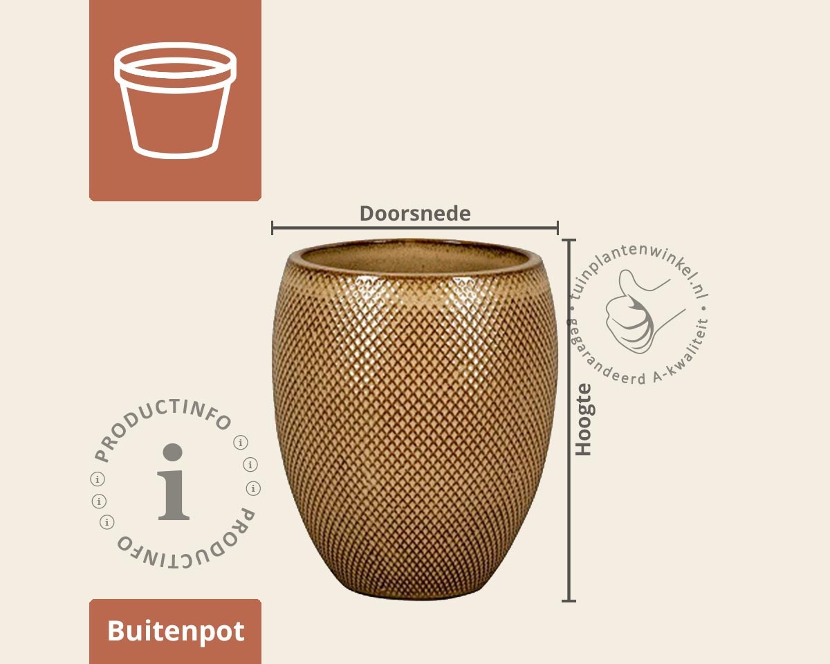 De pot is voorzien van een afwateringsgat voor een goede waterafvoer. Wilt u de pot binnen gebruiken, dan adviseren wij om een transparante binnenhoes te gebruiken.