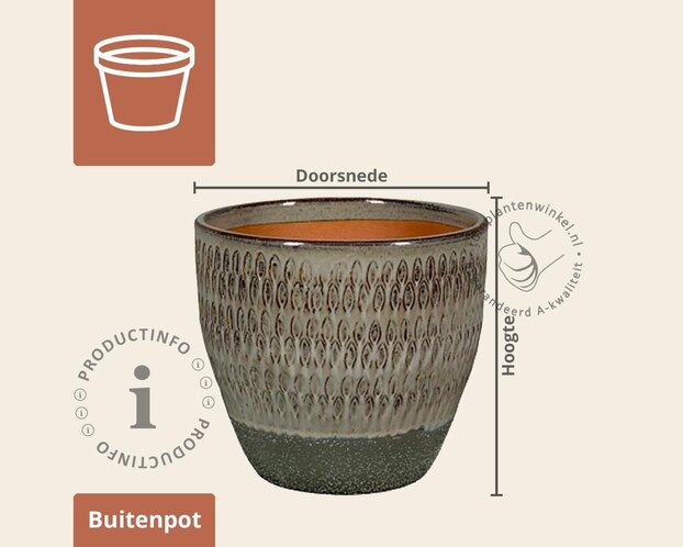 Dankzij de duurzame afwerking is deze bloempot weerbestendig, onderhoudsarm en vorstbestendig. Daarmee is de Corsica uitstekend geschikt voor buitengebruik. De combinatie van structuur en kleur maakt deze pot tot een stijlvolle blikvanger op uw terras of balkon. Prachtig in combinatie met siergrassen, bloeiende vaste planten of een compact fruitboompje. Zo ontstaat een natuurlijke maar uitgesproken uitstraling. De pot is voorzien van een afwateringsgat voor een goede waterafvoer.