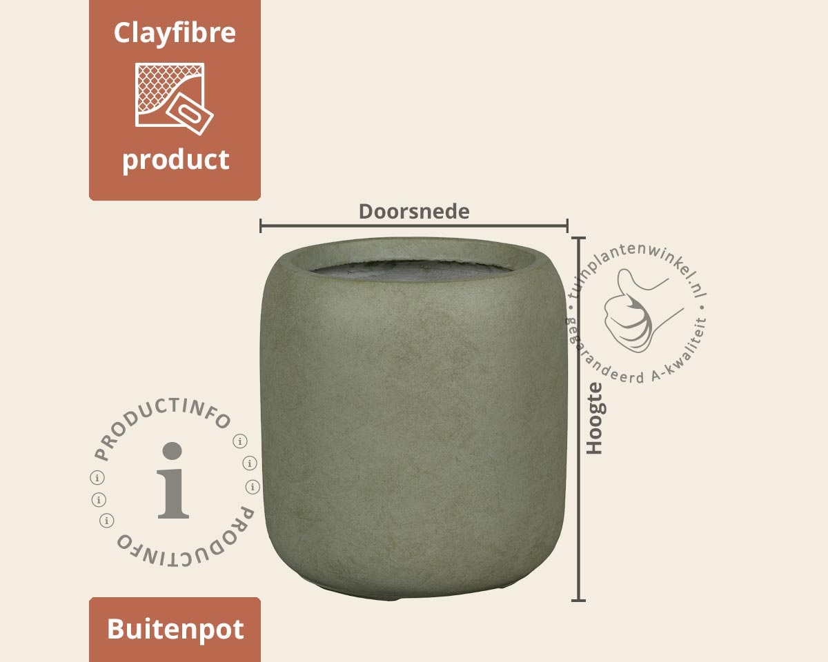 De zachte groentint vormt een stijlvolle basis voor siergrassen, sterke bloeiende vaste planten of een compacte fruitboom. Ook kruiden zoals rozemarijn of tijm komen in deze pot mooi tot hun recht. Zo creëert u een rustige en verzorgde uitstraling op uw terras of in de tuin. De pot is voorzien van een afwateringsgat voor een goede waterafvoer.
