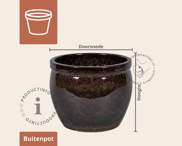De pot is voorzien van een afwateringsgat voor een goede waterafvoer. Wilt u de pot binnen gebruiken, dan adviseren wij om een transparante binnenhoes te gebruiken.