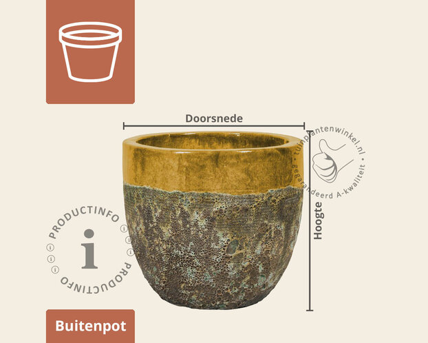 Zorgeloos uw Bloempot Melbourne 2-03 misty oker aanplanten, dat is natuurlijk wat u wilt! Bij Tuinplantenwinkel.nl verkopen we altijd A-kwaliteit planten en bomen van de allerbeste kwekers. Daarnaast geven we aangroei garantie op uw en alle andere tuinplanten die we online aanbieden.