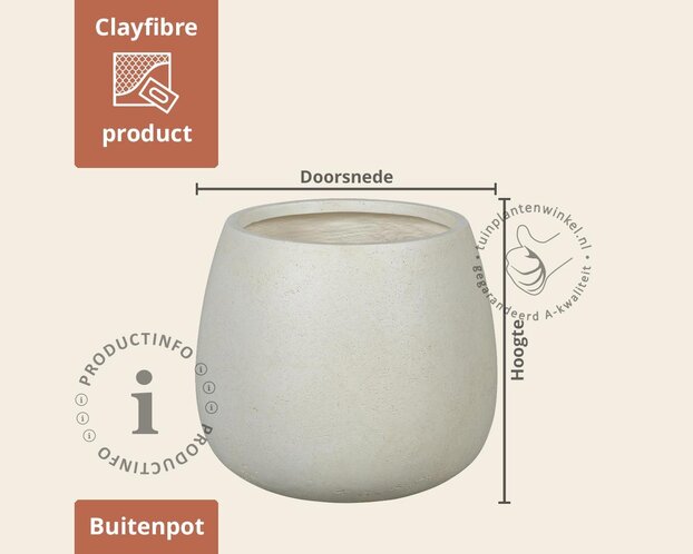 De crèmekleur vormt een rustige basis voor siergrassen, bloeiende vaste planten of een compacte fruitboom. Ook een kleine kruidentuin komt in deze pot prachtig tot zijn recht. Zo creëert u een warme en uitnodigende sfeer op uw terras of in de tuin. De pot is voorzien van een afwateringsopening aan de onderzijde.