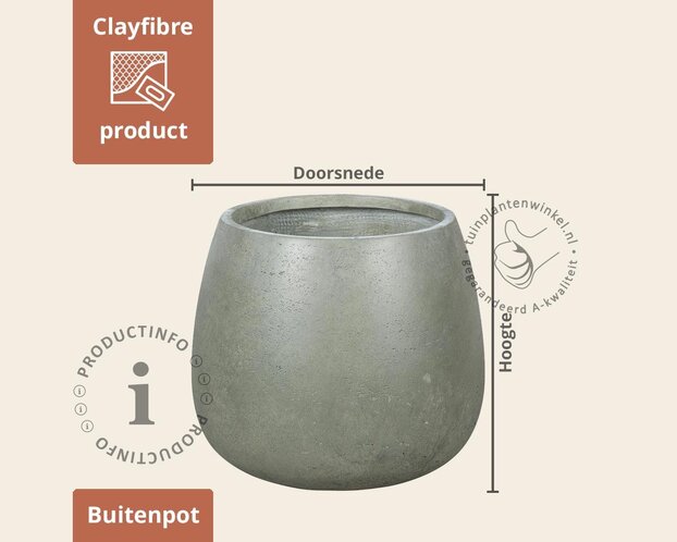 De Oklahoma is vervaardigd uit Clayfibre, een materiaal dat de uitstraling van keramiek combineert met een lager gewicht. Hierdoor is de pot eenvoudiger te verplaatsen dan traditionele terracotta of keramische modellen. De pot is geschikt voor buitengebruik en bestand tegen normale weersinvloeden. Clayfibre biedt langdurig gebruiksgemak. Bij blootstelling aan weer kan het materiaal in de loop der tijd op natuurlijke wijze verouderen.