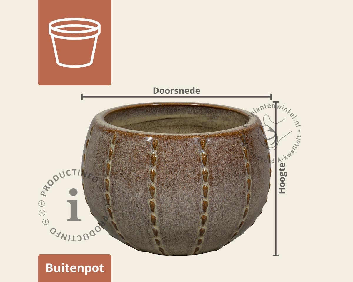 Deze pot is voorzien van een duurzame glazuurlaag, waardoor hij weerbestendig, onderhoudsarm en vorstbestendig is. De glazuur beschermt het keramiek tegen weersinvloeden en zorgt voor een rijke kleurbeleving met natuurlijke diepte.