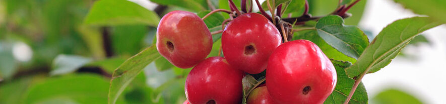 De vruchten van de Sierappelbomen zijn letterlijk miniatuurappels. Ze zijn niet giftig, maar ook niet lekker. Je zou er appelmoes van kunnen maken, maar bespaar je de moeite die het kost om deze vruchtjes te schillen...