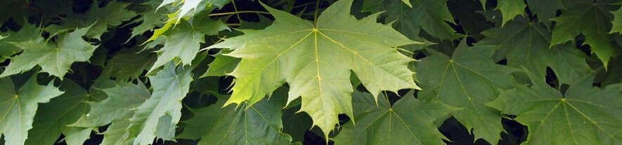 Het grote blad van de Acer platanoides 'Globosum' is frisgroen in de zomer.