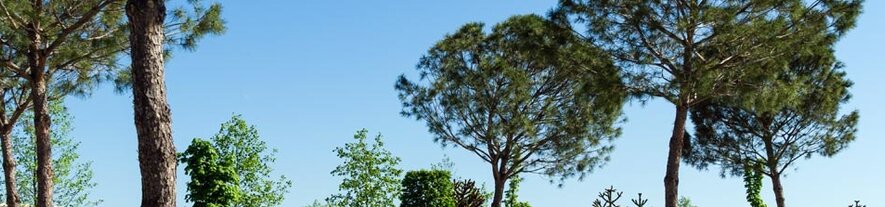De Parasolden hoe de Pinus pinea in het Nederlands genoemd wordt, groeit met zijn rechte stam erg hoog.