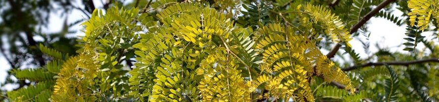 Het blad is groengeel en valt daarmee extra op! De kroon van de meerstammige gleditsia is breed opgaand en goed in model te snoeien.