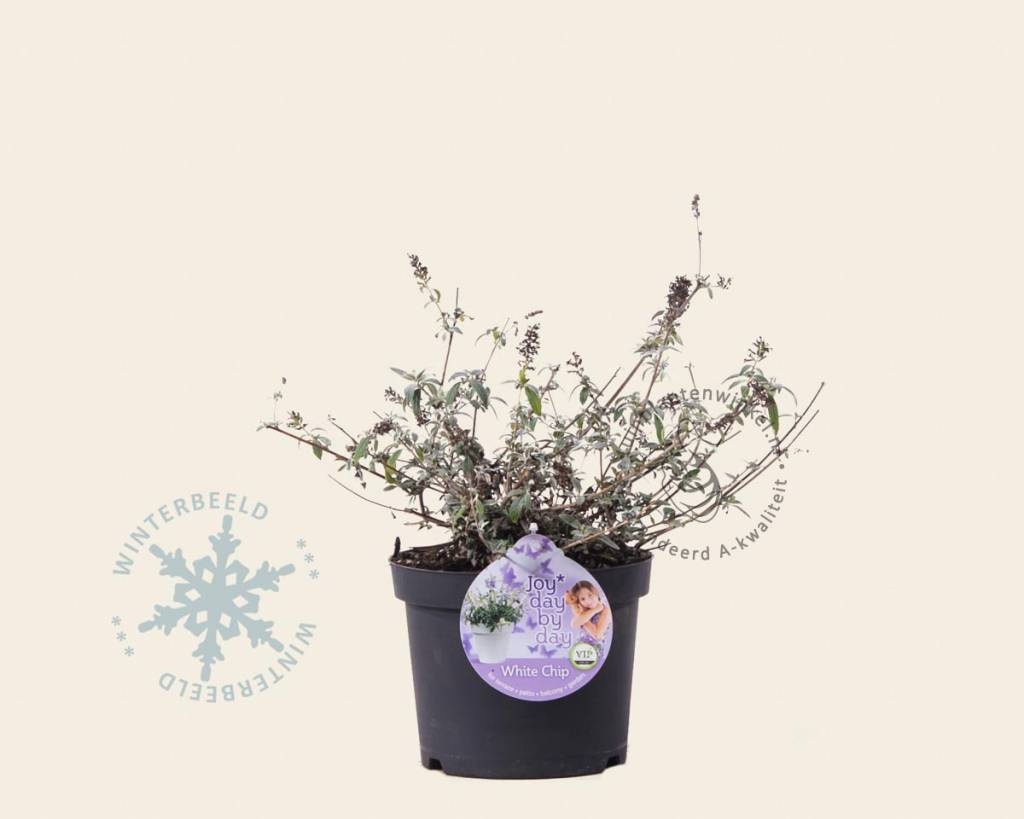 Antwoord: Buddleja 'White Chip' is een laagblijvende vlinderstruik die compact groeit, daarom is deze variant prima geschikt voor in kleinere tuinen in de volle grond, in borders in groepjes of solitair en zelf voor in een pot op het terras of balkon. De standplaats is wel graag een zonnige plek in de tuin. De bloemkleur van de Buddleja 'White Chip' is wit. Na de bloei de bloemen weg knippen is alleen maar goed om meer bloemen te vormen. Het kan dan zelfs zijn dat de plant tot september bloeit.