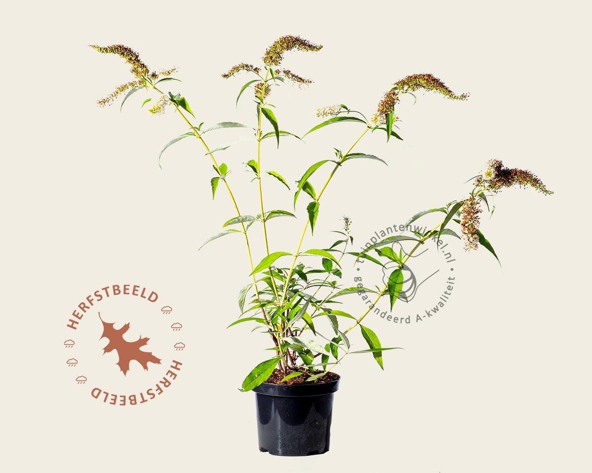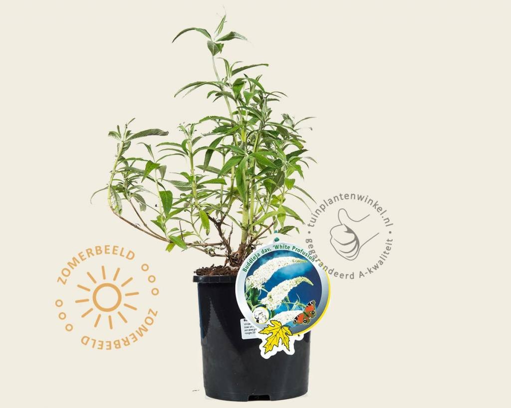 De Vlinderstruik wit of Buddleja davidii 'White Profusion' bloeit van juli tot september met witte pluimen en is een ware attractie voor vlinders. De vlinders doen zich tegoed aan de nectar, waarmee elke bloem gevuld is. En bloemen zijn er genoeg. Elke aar van de Vlinderstruik wit is bezaaid met honderden, zo niet duizenden bloemen. In de winter blijven er enkele grijsgroene bladeren aan de Buddleja davidii 'White Profusion' zitten. Helemaal bladverliezend is de Witte Vlinderstruik dus niet.