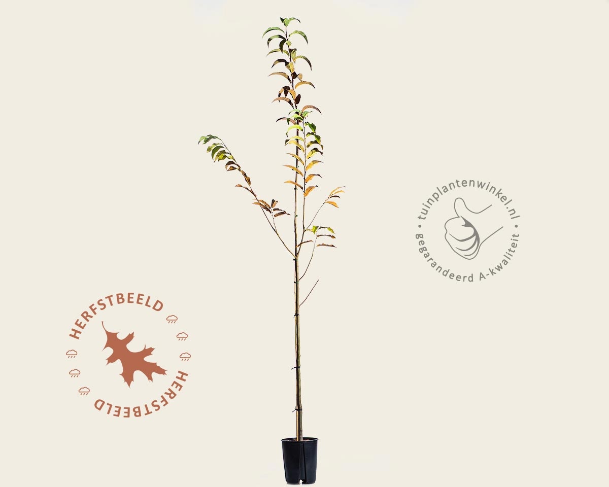 De Castanea sativa ‘Lyon’ is een bijzondere veredelde variant van de tamme kastanje, die zich onderscheidt door zijn grote eetbare vruchten en opvallend geurende bloemen. Deze boom, ook wel bekend als sativa lyon, is ideaal voor wie in een kleinere tuin toch wil genieten van een echte kastanjeboom. Met een uiteindelijke hoogte van ongeveer 7 meter blijft de 'Lyon' tamme kastanje compacter dan de gewone tamme kastanje, waardoor hij ook in kleinere tuinen goed tot zijn recht komt.