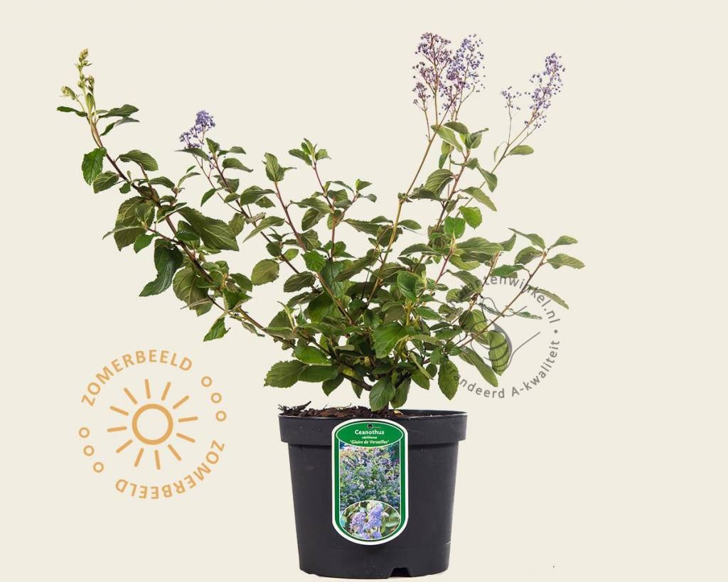 Ceanothus delilianus 'Gloire de Versailles' is een mooie nazomer- en herfstbloeier, die goed tot zijn recht komt als solitair. De Amerikaans sering krijgt tijdens de bloei van juni tot september mooie, grote trossen van lichtblauwe bloemen. Het lichtgroene blad is breed/ovaal van vorm en vormt een dicht bladerdek.