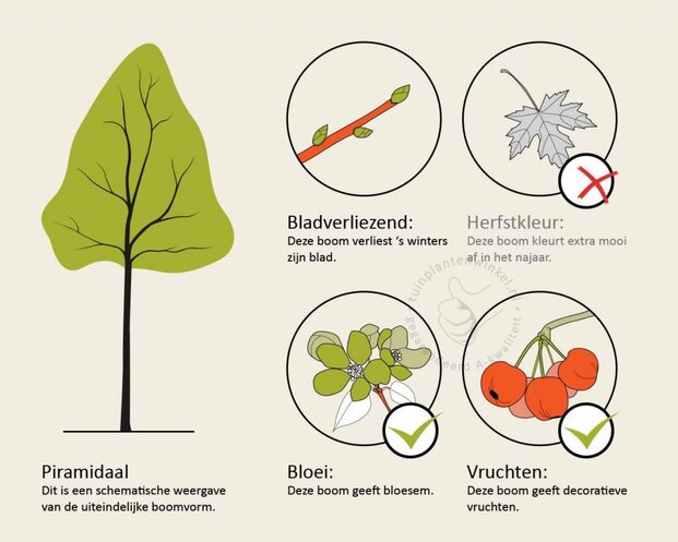 Bomen van tuinplantenwinkel.nl kunt u jaarrond planten. Dit kan omdat we al onze bomen in pot leveren. Aanplanten in de herfst, winter, lente én zomer is dus altijd mogelijk, met aangroeigarantie!