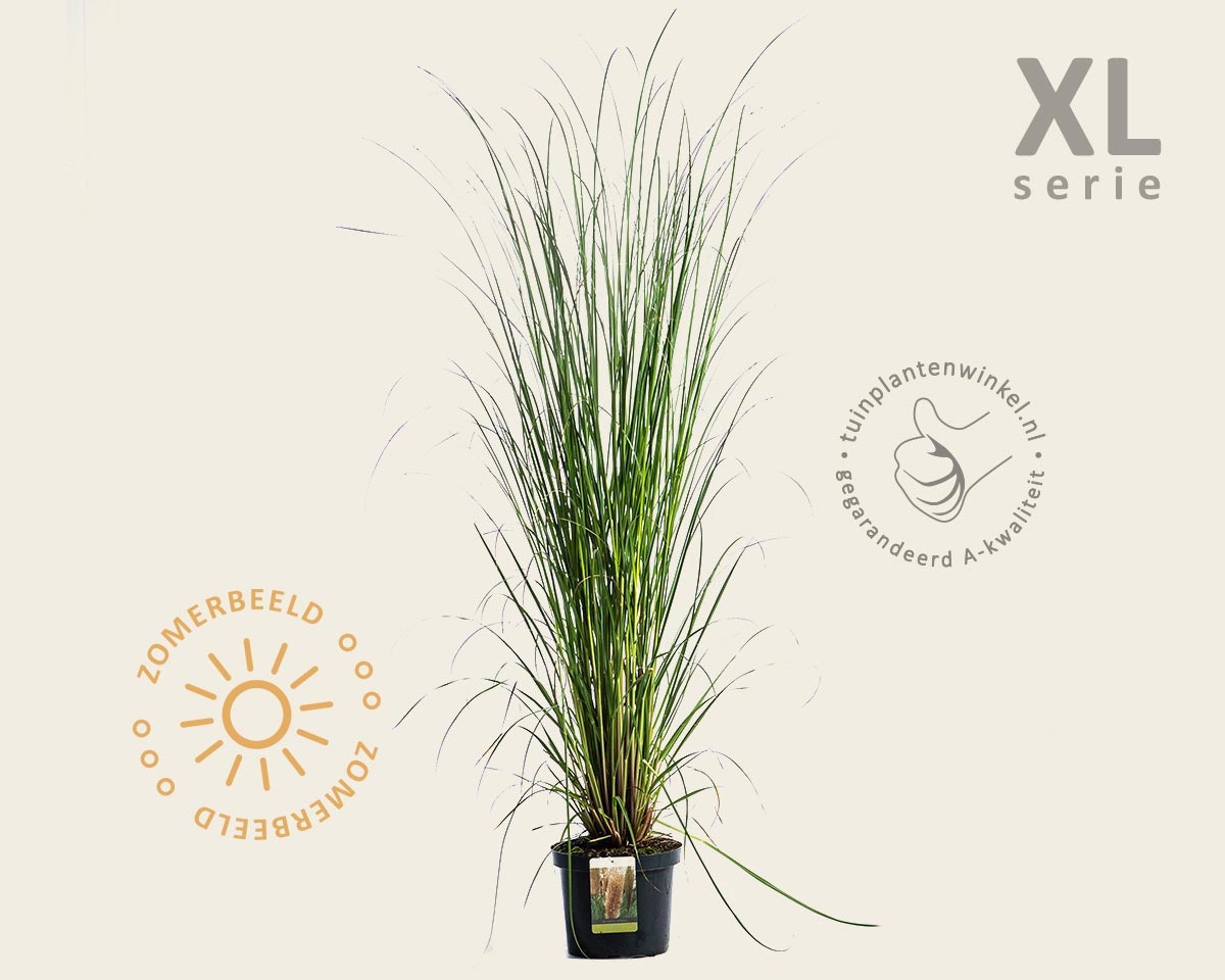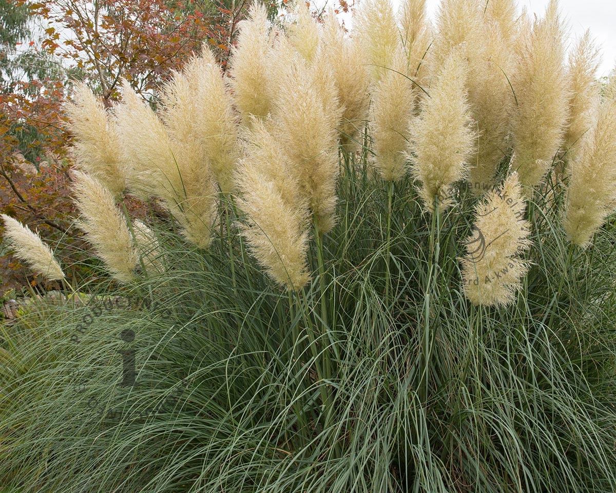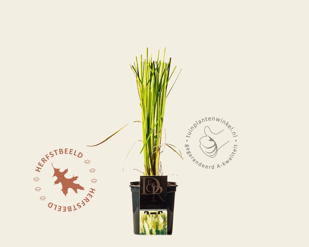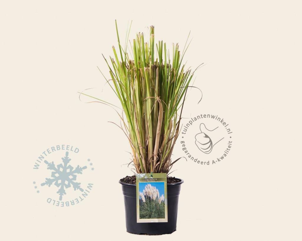 Cortaderia selloana (Pampasgras) is een zeer attractieve solitair, die oorspronkelijk uit Zuid-Amerika komt. Pampasgras bloeit van september - oktober met volle, zilverwitte pluimen die de grootste van alle grassen zijn en tot twee en een halve meter hoog kunnen worden; zij blijven een eyecatcher tot november; teveel regen zorgt wel voor bruine verkleuring. Pampasgras groeit ook in de breedte flink door, geef hem dus de ruimte. De lange smalle bladeren van Pampasgras verkleuren en verdorren in de winter. Laat ze gewoon zitten als natuurlijke beschermer tegen koude en uitdrogende winden.