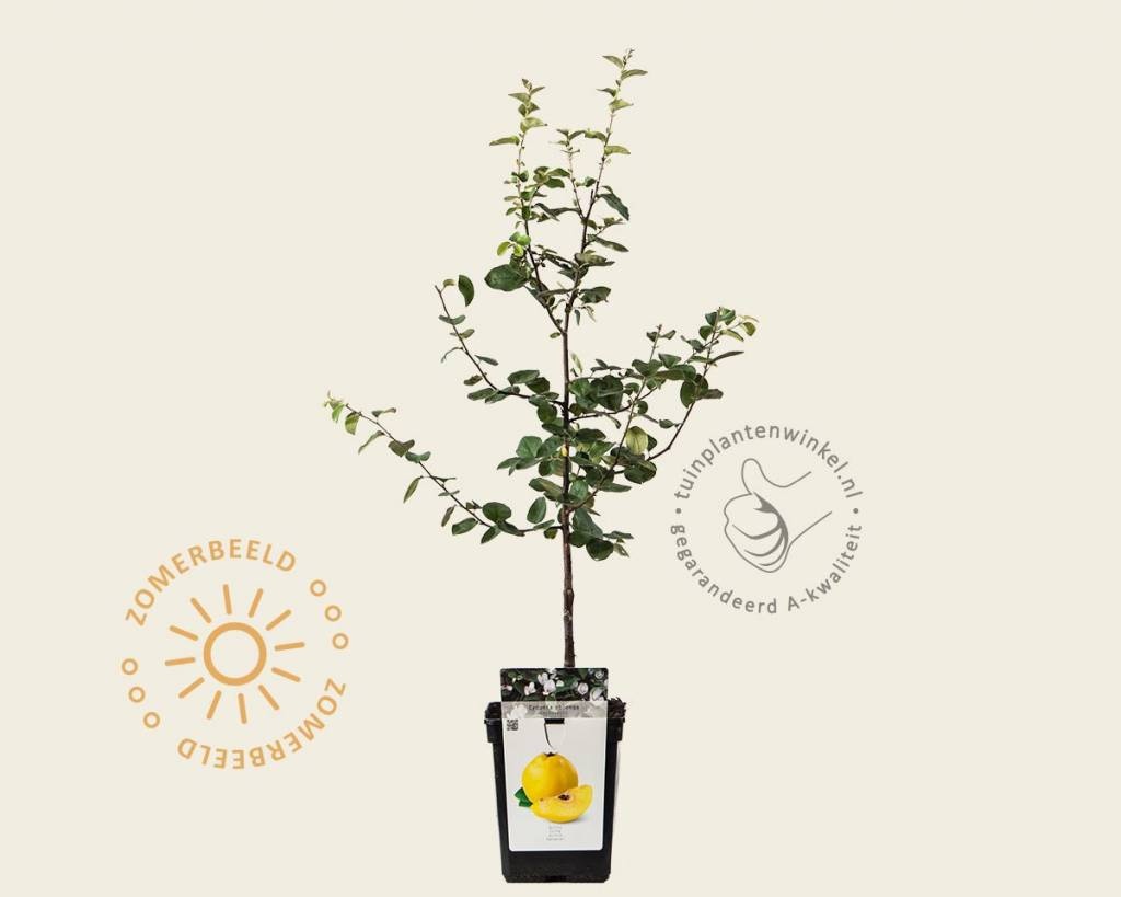 Deze variant van de Kweepeer is op een traaggroeiende onderstam geënt. Dit betekent dat de mini-fruitboom (ook wel patio-fruitboom genoemd) langzaam groeit, dus laag blijft en tevens prima vruchten draagt! De mini Kweepeer is daardoor prima geschikt op plekken waar niet zoveel ruimte is voor een grote fruitboom. Cydonia oblonga 'Leskovacz' kan in een bloembak uw terras of balkon opfleuren en jarenlang voorzien van de nodige vruchten! De mini Kweepeer heeft vrij grote, vaak iets ronde vruchten, die heel leuk zijn om binnen in huis als decoratie neer te leggen in een schaal. De vrucht wordt wel gebruikt in compote of jam.