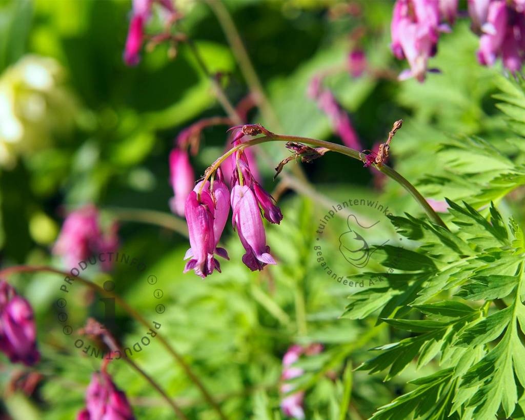 Antwoord: De bloemen die op een gebroken hartje lijken verschijnen in het voorjaar in de maanden april mei. De bloemen van deze Dicenta formosa 'Luxuriant' zijn donkerroze van kleur. Het blad is fris groen van kleur.