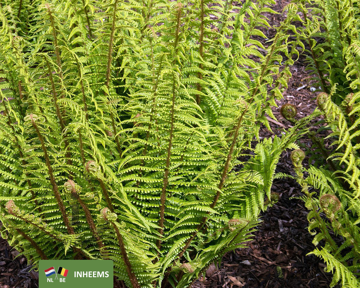 De Dryopteris affinis is een laagblijvende mannetjesvaren met opgaande groei in de breedte. Het frisgroene blad is geveerd en staat in een rozetvorm om de kern van de plant. Het nieuwe blad groeit omhoog met goudgele scheuten en groeit later in de breedte. De Dryopteris affinis is winterhard en groenblijvend en is daardoor een kleurrijke toevoeging aan uw tuin. De Dryopteris affinis doet het prima als solitair, maar komt ook goed tot zijn recht in groepen in de border.