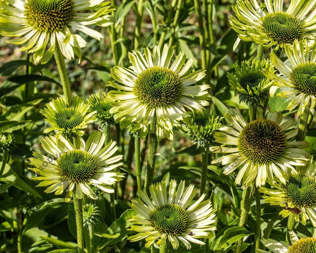 Echinacea 'Green Jewel' is een wel heel bijzondere vaste plant. De margrietachtige bloem is volledig groen en valt gedurende de bloeiperiode zeker op in uw tuin. Daarnaast trekt deze bijen en vlinders aan. De tuinplant bloeit in de late zomer, staat mooi met een aantal bij elkaar in de border en combineert mooi met siergrassen, ridderspoor en floxen.