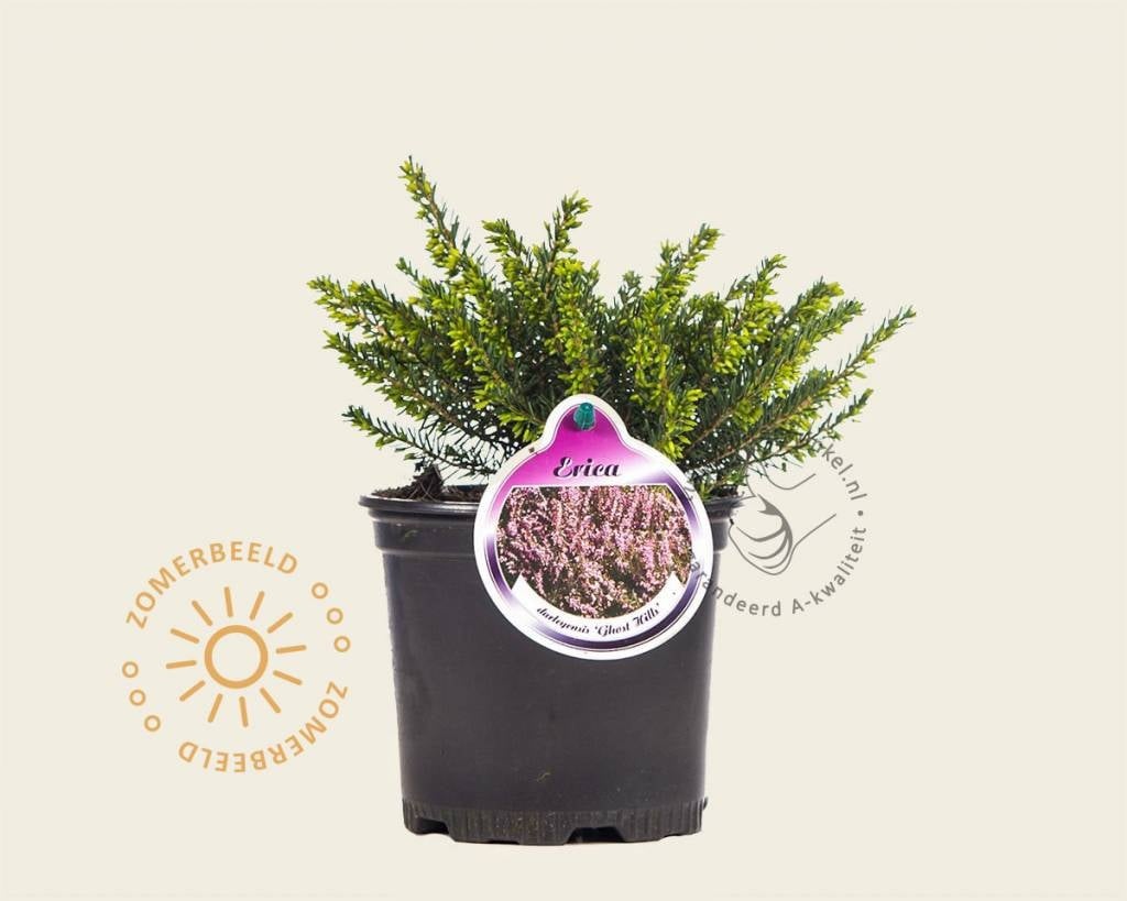 Erica darleyensis 'Ghost Hills' is een winterbloeiende tuinplant. De paarsroze bloemetjes zorgen in de periode van december tot in april voor kleur in de tuin of in een pot op het balkon of terras. De naaldvormige blaadjes zijn donkergroen. Als bodembedekker of met een aantal in een groepje bij elkaar geeft het mooiste effect.