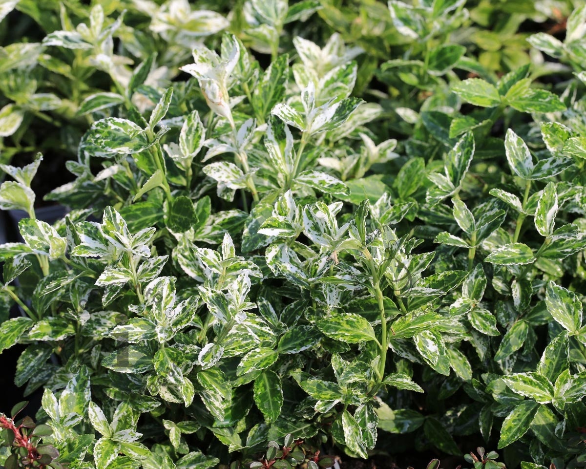 Een plant die in de tuin en op ons plantencentrum altijd opvalt is Euonymus fortunei ‘Harlequin’. Een tuinplant die het niet moet hebben van de bloei maar van het blad. In het voorjaar en gedurende de zomer kleuren de nieuwe scheuten spierwit om vervolgens in de herfst en winter terug te verkleuren naar gemarmerd wit-groen. Kardinaalshoed is wintergroen. Kardinaalshoed wordt ook wel Kardinaalsmuts genoemd.