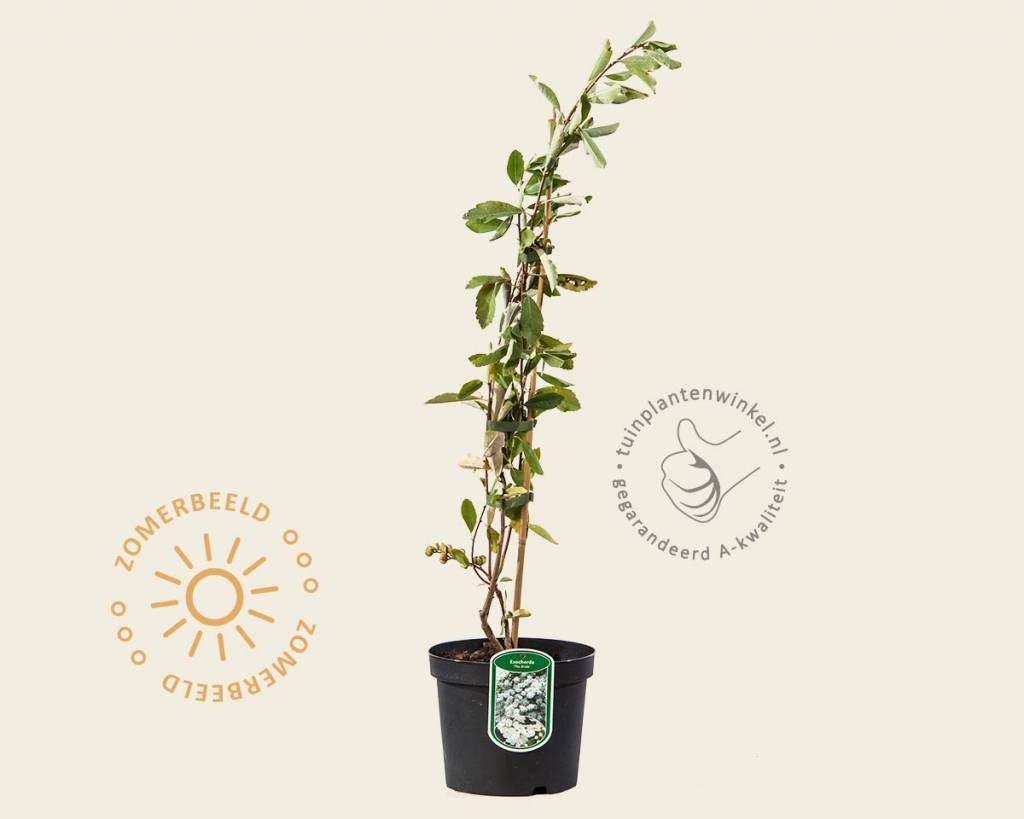Exochorda x macrantha 'The Bride' is een prachtige sierheester met parelachtige bloemknoppen, die uitgroeien tot een overweldigende, zuiverwitte bloesem in het voorjaar, wat bij een volwassen struik een spectaculair beeld oplevert. De tuinplant heeft slappe twijgen en groeit breed uit en krijgt zo de vorm van een mini-treurwilg. Ze is ook mooi te leiden tegen een muur of rond een pergola. Parelstruik is geschikt voor een plaats achter in de border of als solitair tegen een muur of schutting. Exochorda x macrantha 'The Bride' is goed winterhard, is wel windgevoelig en verliest in de herfst zijn bladeren.