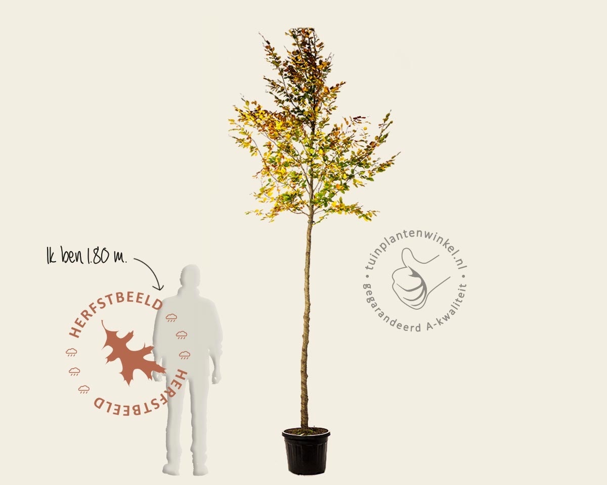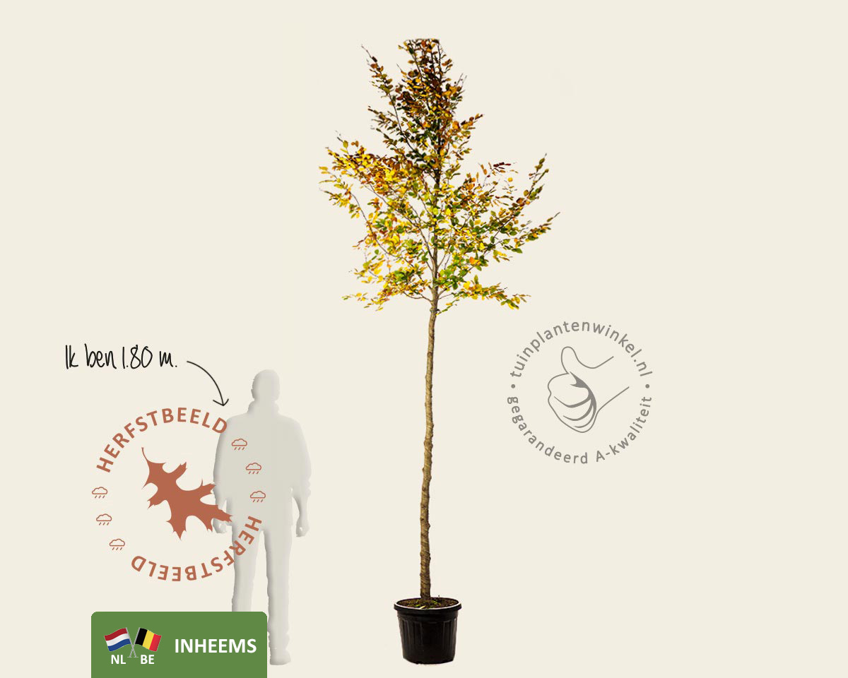 Fagus sylvatica is de bekende beuk met groene bladeren, die in de herfst oranjebruin verkleuren en in de winter aan de boom blijven hangen. Hierdoor is de tuinplant het hele jaar door wel dicht. Pas als het nieuwe blad begint te groeien, verliest Fagus sylvatica het oude blad. Plaats de Groene beuk op een plaats waar hij mooi uit kan groeien, want hij kan erg groot worden met een brede, dichte kroon en in de herfst veel beukenootjes kan krijgen.