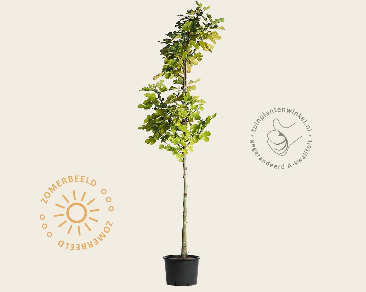 De Ficus carica is een prachtige Vijgenboom die u niet alleen voor de sierwaarde in uw tuin zet. Op een beschut plekje in de zon, zal hij u ook nog eens trakteren op heerlijke vruchten. Hoe meer zon, hoe beter de vruchten rijp worden. Vijgen hebben geen vaste bloei- en oogstperiode. In de mediterrane gebieden kunnen er daardoor gedurende een lange periode vruchten van de Ficus carica geplukt worden. Vanwege het minder warme klimaat, beperkt de oogstperiode in ons land zich tot de maanden augustus, september en oktober. Door het jaar heen geven de prachtig gevormde bladeren toch wel de meeste sierwaarde. De Ficus carica is niet wintergroen. In de winter verliest hij zijn blad.