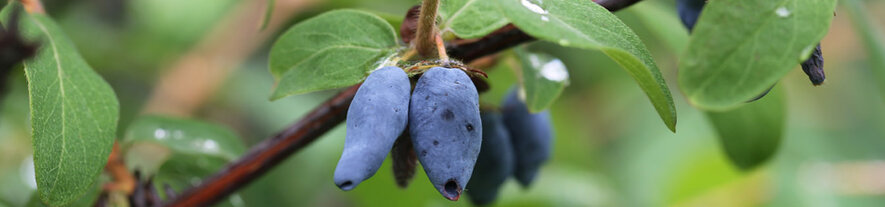 De honingbes geeft vrij kleine langwerpige vruchten met een mooie blauwe kleur. Zo zoet als honing zijn ze niet, maar ze zitten wel vol met voedingsstoffen.