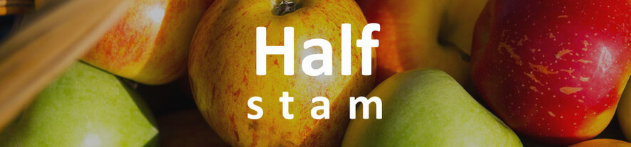 Halfstam appelbomen hebben een middelhoge (of middellage zoals u wilt) stam. Ze vallen wat formaat tussen een laagstam en hoogstam in. Hierdoor zijn de bomen nog steeds geschikt voor de meeste tuinen en kunt u nog redelijk gemakkelijk bij de vruchtdragende takken zodat u geen ladder nodig hebt bij het plukken.
