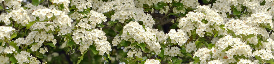 De meidoorn haag; Bloeiperiode mei; Doorns aan de plant. Heel logisch!