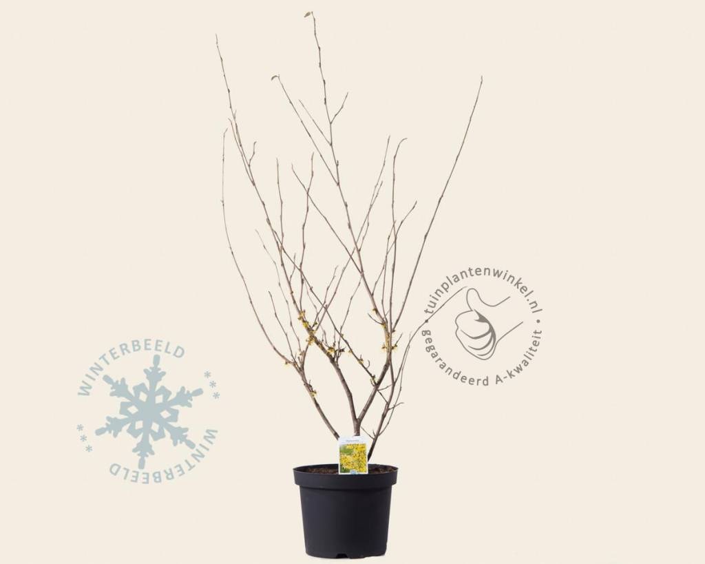 De Hamamelis intermedia 'Arnold Promise' heeft als Nederlandse naam Toverhazelaar. De Toverhazelaar Hamamelis intermedia 'Arnold Promise' is een geel bloeiende soort met veel gele geurende bloemen in januari februari maart. Omdat de bloeiperiode zo vroeg is valt deze plant goed op in de winter en is het mooie heester die zeker in de tuin niet moet ontbreken. Als de bloemen bijna zijn uitgebloeid krijgen deze een lichtgele kleur.