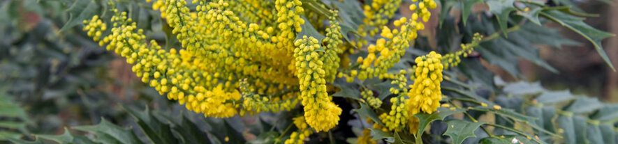 Mahonia heeft meestal stekelachtig blad en heeft nauwelijks snoei nodig.
