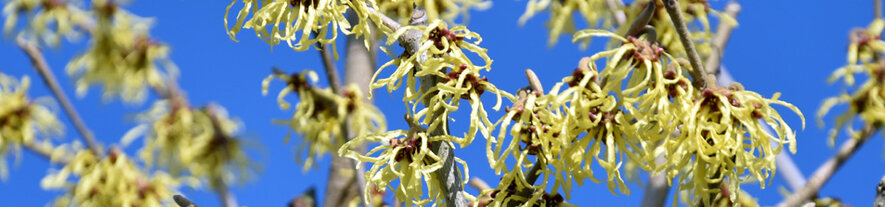 De Toverhazelaar (Hamamelis) is een prachtige én geurende winterbloeier een opvallende verschijning dus in de winter. Er zijn maar weinig planten actief als de dagen het kortst en de temperaturen het laagst zijn. De Toverhazelaar is hier een uitzondering op en bloeit juist in deze periode. De takken van deze struik staan in januari en februari vol met gele bloemen die in clusters bijeen staan. De Toverhazelaar bloeit dus op zijn kale takken. Naast de gele hamamelis zijn er ook soorten met oranje en rode bloemen. Van dichtbij lijken de bloemblaadjes op kleine lintjes.