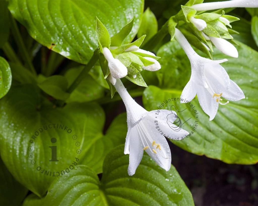Hosta sieboldii 'Snowflakes' is een vaste tuinplant met prachtige, decoratieve, lichtgroene bladeren. Zijn naam heeft de tuinplant aan de prachtig witte bloemen (Snowflakes) te danken, die in de zomer boven de bladeren uitsteken, en aan de Duitse botanicus Siebold (siboldii), die de plant in Europa heeft geïntroduceerd. Hosta sieboldii 'Snowflakes' is winterhard, bladverliezend en vormt stevige pollen.