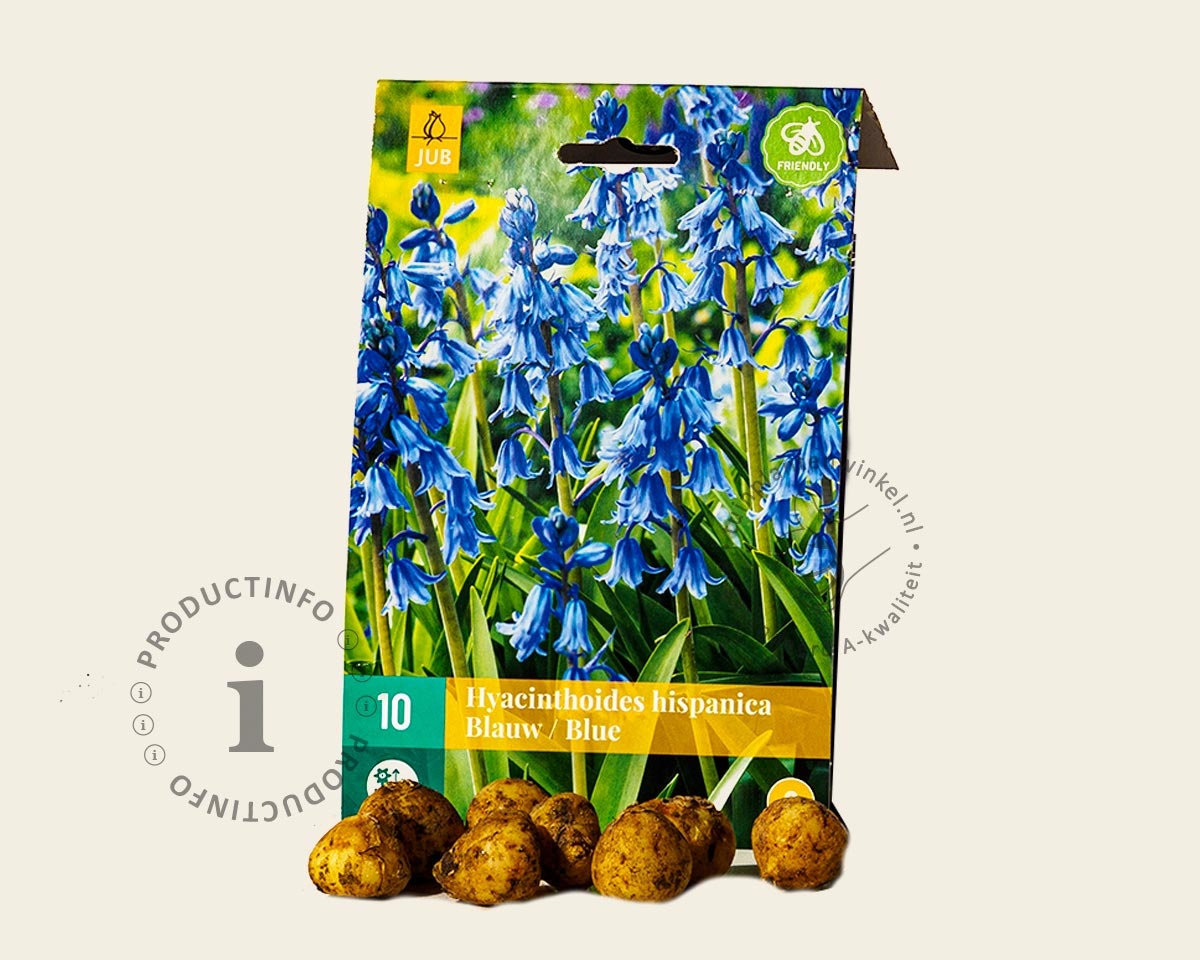 Bloembollen worden in de herfst en begin van de winter aangeplant. Let op dat u de Hyacinthoides hispanica Blue tijdig bestelt, want ze zijn maar een beperkte periode leverbaar. Plantdiepte van deze bloembol is ongeveer 10 cm onder de grond. (vanaf de onderkant van de bloembol gemeten). Zorg ervoor dat de grond tijdens warme en droge periodes niet uitdroogt. Dit is vooral belangrijk als de bloembollen onder bomen zijn aangeplant.