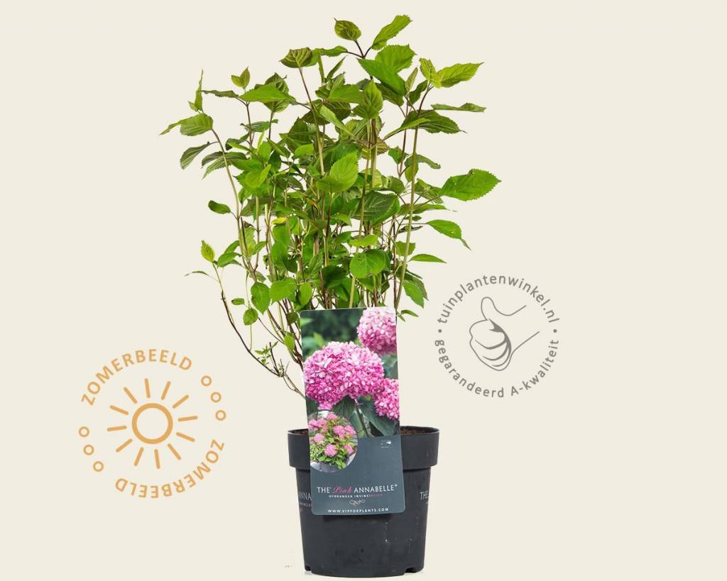 Hydrangea arborescens 'Invincibelle' krijgt roze bloemen. En dat is bijzonder, want bijna alle andere hortensia's uit deze familie bloeien wit. Deze tuinplant wordt vanwege de bloemkleur ook wel de 'Pink Annabelle' genoemd. Hydrangea arborescens 'Invincibelle' bloeit met iets kleinere bloemen dan de gewone Annabelle. Het voordeel hiervan is dat de plant minder snel omvalt.