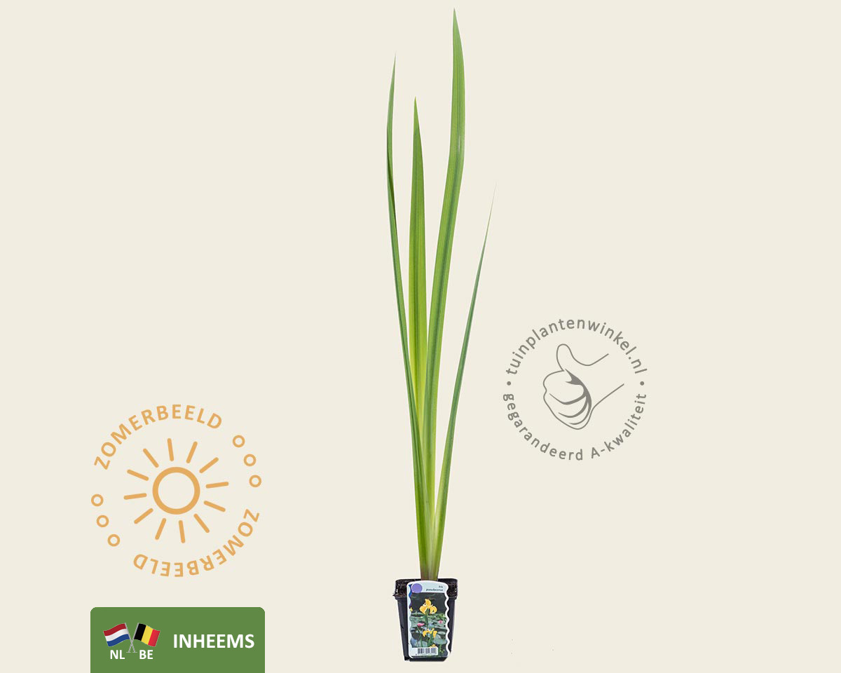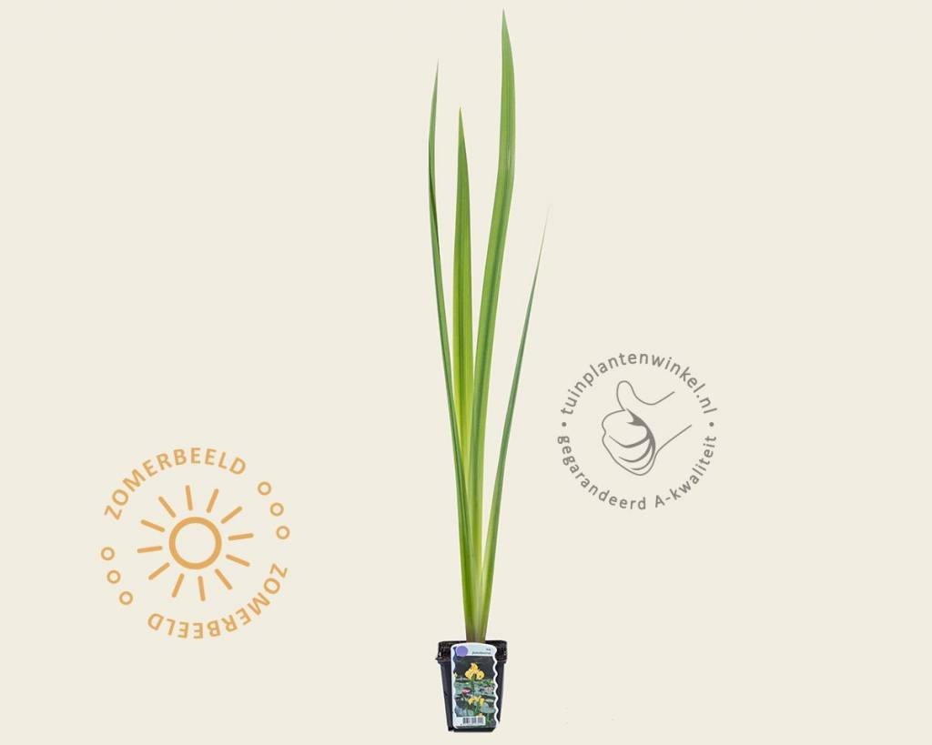 Iris pseudacorus is een bladverliezende waterplant/oeverplant. Deze Gele lis bloeit van mei t/m juli met gele bloemen, wordt uiteindelijk ongeveer 100 cm hoog en staat bij voorkeur in de zon of halfschaduw. De plantdiepte voor deze waterplant in de vijver bedraagt 0 tot -20 centimeter t.o.v. de waterspiegel.