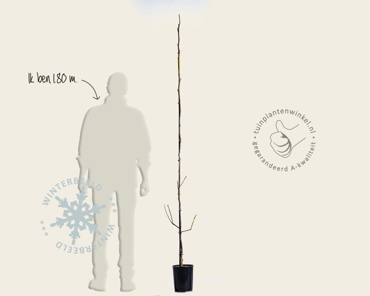 Juglans regia ‘Lange van Lod’ is een zeldzame, veredelde Nederlandse selectie van de gewone walnoot, die op professionele wijze is gekweekt. De naam ‘Lod’ verwijst naar de herkomst van deze boom in Venlo. De boom vormt een open, brede kroon en kan 12-15 meter hoog worden. Het blad is heldergroen, oneven geveerd en 20-30 cm lang, en verkleurt in de herfst naar geel. De boom is niet bladhoudend en laat zijn bladeren in de late herfst vallen. Oudere bomen hebben een lichtgrijze, diep gegroefde stam. In mei/juni is de bloeiperiode, waarin de boom onopvallende, geelgroene hangende katjes produceert. De eerste vruchten kunnen al binnen een paar jaar na aanplant verschijnen. De noten zijn extreem groot (tot 8 cm lang en 4-5 cm breed), vergelijkbaar met een tennisbal, en zijn gemakkelijk te kraken. De noten staan bekend om hun uitstekende smaak en zijn geschikt om vers te eten of te gebruiken bij het bakken. De boom bevordert de biodiversiteit door het aantrekken van vogels en insecten, en de kroon biedt veel schaduw, waardoor hij ook als solitair goed tot zijn recht komt. Het hout van Juglans regia is waardevol voor meubels, al is Juglans nigra vaak beter voor houtproductie. De boom wordt geleverd in pot. Het kweken en oogsten van deze walnotenboom geeft veel plezier. Bij het aanschaffen van deze boom is het verstandig om producten te vergelijken. De ‘Lange van Lod’ is zelfbestuivend, maar goede bestuiving is belangrijk voor een optimale vruchtzetting. ‘Lange van Lod’ is een ras dat u vooral tegenkomt in oudere boomgaarden en hoogstamboomgaarden, en past daardoor mooi bij een meer klassieke of landschappelijke tuinsfeer.