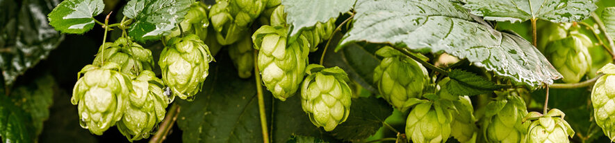 Hop bloeit rond eind juni maar zie je bijna niet, daarna komen de vruchten.