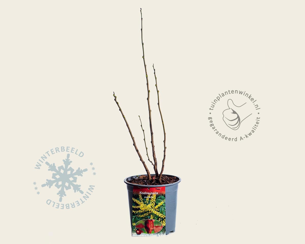 Jonge bomen zijn gevoelig voor vorst, maar herstellen doorgaans snel. Hoe warmer het klimaat, hoe rijker de bloei en hoe opvallender de herfstkleur. De Koelreuteria paniculata is verkrijgbaar als meerstammige boom, waarbij meerdere takken vanuit de basis omhoog groeien. Dit geeft de boom een natuurlijke, open kroon en maakt hem bijzonder geschikt als solitair in de tuin of als eyecatcher in parken en op pleinen.