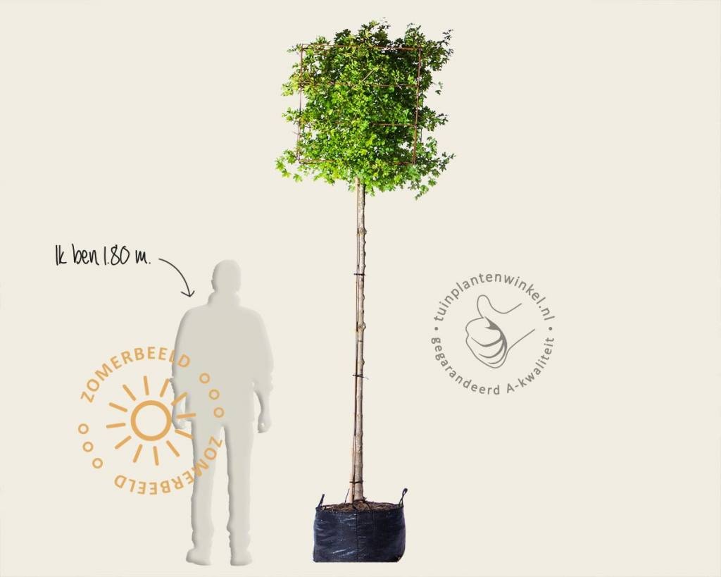 Met deze kubus- of blokvormige boom plaatst u een echte eye-catcher in de tuin. Het snoeien van bomen is een eeuwenoude ambacht en werd op grote schaal toegepast in vooral de Franse tuincultuur. Door de laanbomen te snoeien in strakke vormen gaf men de lanen nog meer allure.