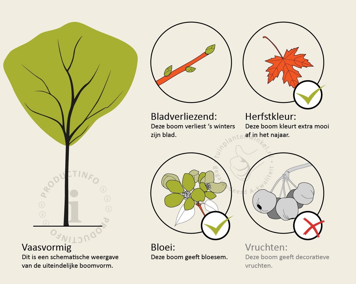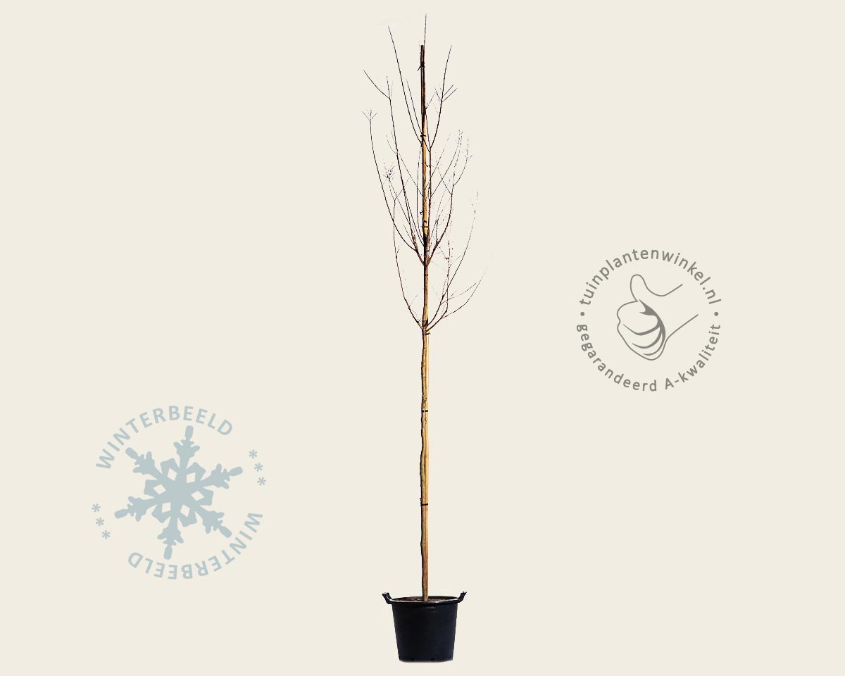 Snoeien is bij deze bladverliezende boom meestal niet noodzakelijk, maar het verwijderen van dode of kruisende takken tussen januari en maart (mits het niet vriest) houdt de kroon gezond en luchtig. Takken aan de onderzijde van de stam kunnen eenvoudig worden weggehaald om de stam mooi vrij te houden.