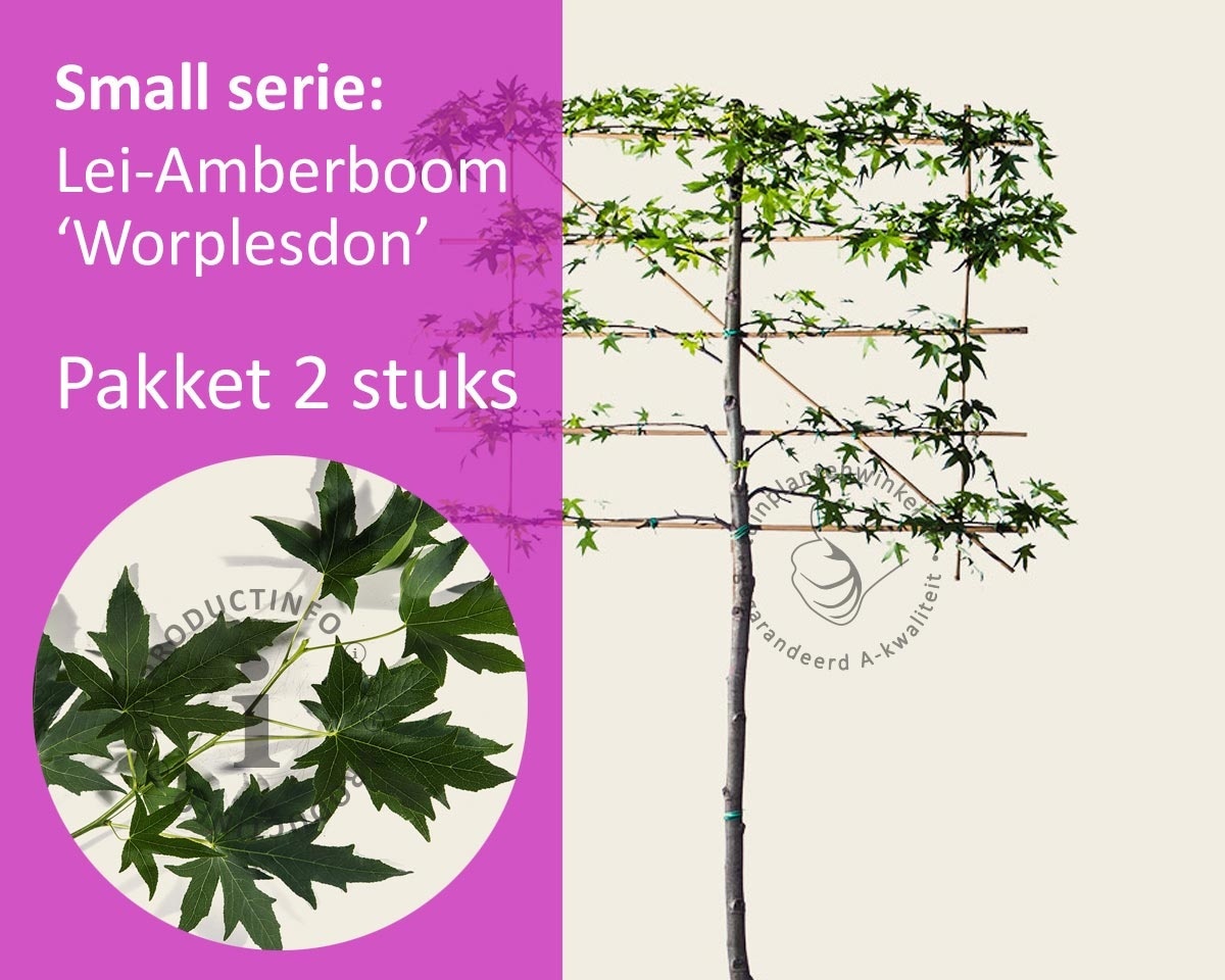 Wanneer u op zoek bent naar een leiboom die weinig eisen stelt en weinig 'overlast' geeft in de zin van bloesem / vruchten / ongedierte, dan is de Lei-Amberboom een van de beste opties. Het opvallendste kenmerk van de Lei-Liquidambar styraciflua 'Worplesdon' is het stervormige blad dat in het najaar een opvallende herfstverkleuring krijgt. Het blad kleurt dan, afhankelijk van de standplaats, in meer of minder mate van geel, via oranje naar felrood. De 'Worplesdon' krijgt, in tegenstelling tot de soort, geen kurklijsten op de stam. De stam van de Lei-Liquidambar styraciflua 'Worplesdon' blijft glad.