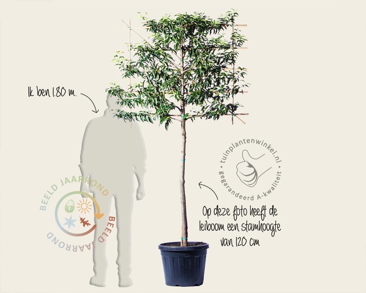 Dit is de groenblijvende leiboom in onze Small-serie. De Prunus lusitanica 'Angustifolia' is een fijnbladige variant in de uitgebreide Laurier-familie. Hij groeit stukken minder hard en ruig dan de alom bekende grootbladige Laurieren. Vandaar dat we deze soort gekozen hebben om te gebruiken als leiboom in onze Small-serie. De Portugese laurier laat zich goed snoeien en is daarmee prima geschikt om als leiboom te gebruiken. Daarnaast is deze Leilaurier nog wintergroen ook! Verder valt de rode gloed van de takken en bladstelen op. Dit geeft deze leiboom het gehele jaar door extra kleur. De kleinere leibomen uit de Small-serie komen het beste tot hun recht in bijvoorbeeld de voortuin, om de 'kijk' in het huis weg te nemen, of tegen de schutting. Tegen de schutting breekt het de eentonige afscherming. Deze Lei-Portugese laurier is hier uitermate goed geschikt voor. Met zijn groenblijvende scherm, zorgt dit leiboompje ook in de winter voor een groen accent.
