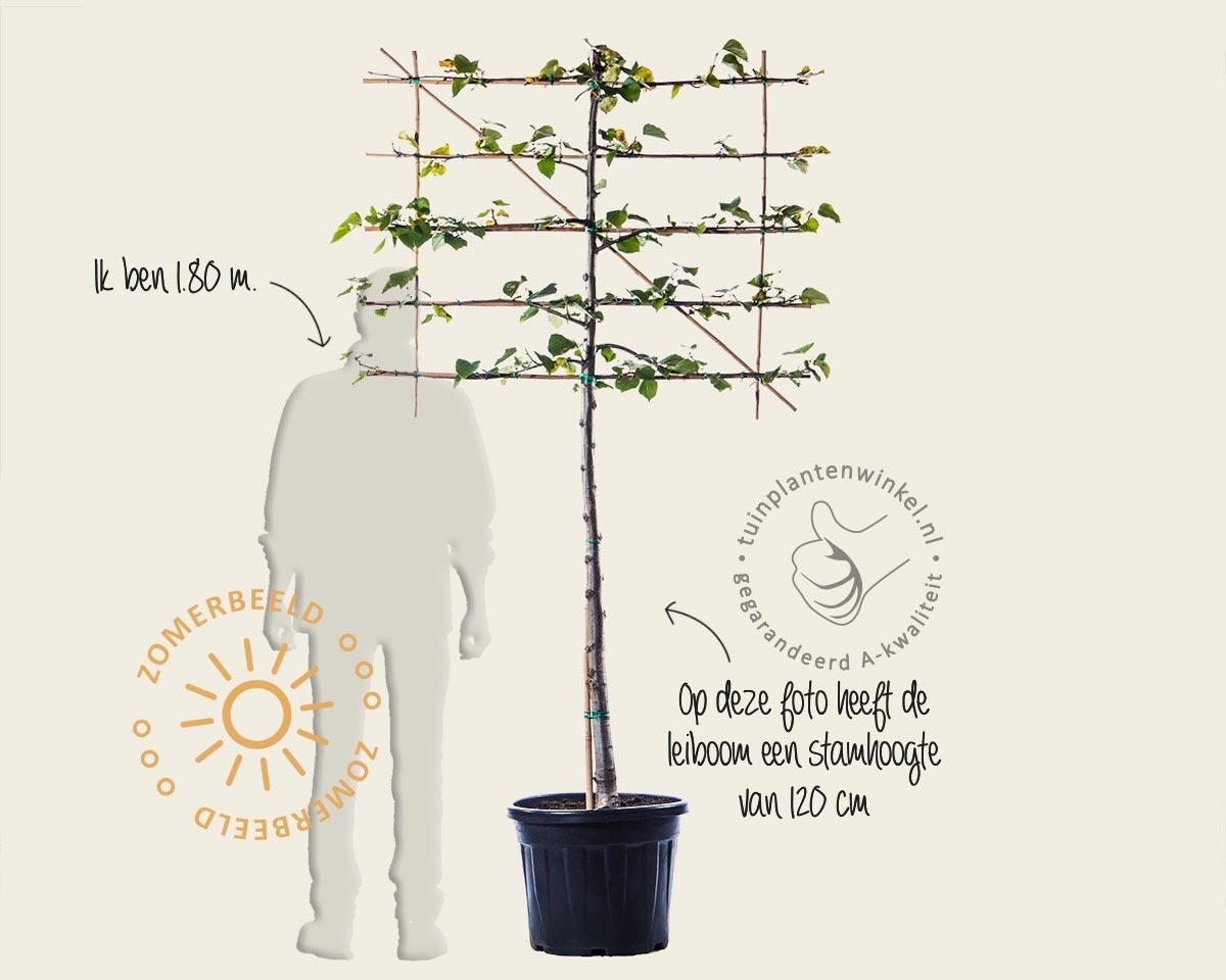 De Lei-Linde is natuurlijk dé klassieker onder de leibomen. Van oudsher wordt deze boomsoort al gebruikt voor het maken van leibomen. Vanwege het zachte en zeer buigzame hout én de snelle groei, is lang geleden al voor de Linde gekozen. Daarnaast verdragen Lindebomen snoei ook nog eens heel erg goed. Daarmee maakt het dat de Lei-Linde een hele goede keuze is als leiboom. Of het ook de beste is, dat hangt van de standplaats af. In de voortuin, of langs de schutting is het een perfecte soort. Dichterbij het terras of langs de inrit zijn er betere keuzes.