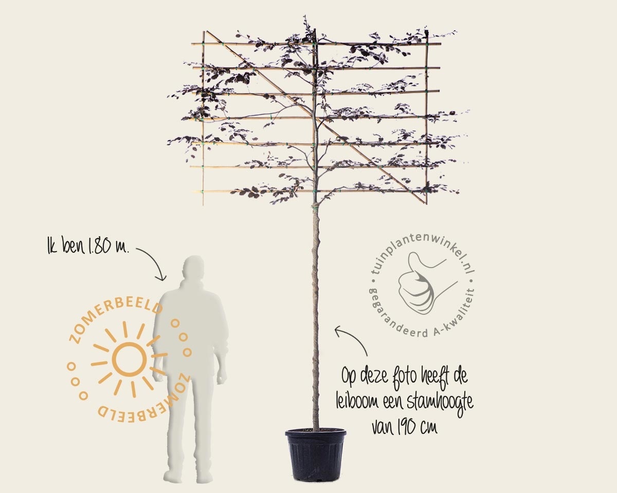 De Rode of Bruine Lei-Beuk heeft mooi diep bruinrood blad. Dit geeft mooie contrasten in de tuin. De Lei-Fagus sylvatica 'Atropurpurea' is een goed winterharde leiboom met een schitterende herfstverkleuring. Een groot voordeel is dat Beuken in de winter hun blad vasthouden, zij het in verdroogde vorm. Het geeft zodoende een lange periode van maximale privacy in uw tuin. Ze stoten het oude verdorde blad pas af in het vroege voorjaar als de nieuwe knoppen gaan uitlopen. De stam van de Lei-Beuken wordt in jute gedraaid om de bast te beschermen tegen zonnebrand. Laat de jute dus zitten. De Lei-Beuk blijft op een windluwe plek zijn dorre blad behouden tijdens de winter. De Lei-Haagbeuk verliest zijn bladeren op een enkel exemplaar na. In de meeste gevallen is echter ook de Lei-Beuk of Lei-Rode Beuk gewoon bladverliezend.