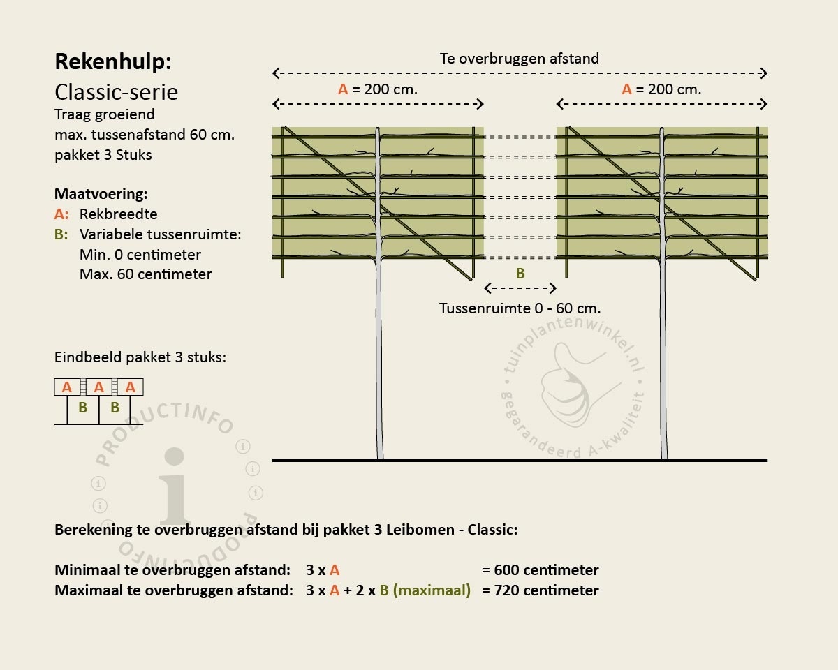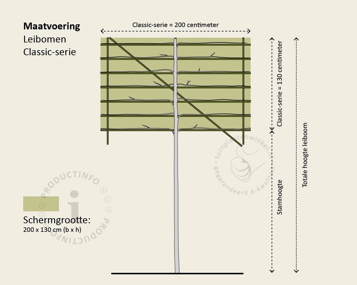 Totale hoogte leiboom Stamhoogte + 130 cm (Classic)